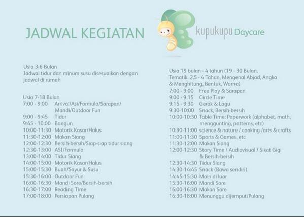 Kupukupudc On Twitter Jadwal Kegiatan Harian Kami Child Daycare Kupukupudaycare Kemang Jakarta Kids T Co Fwcisufc8c